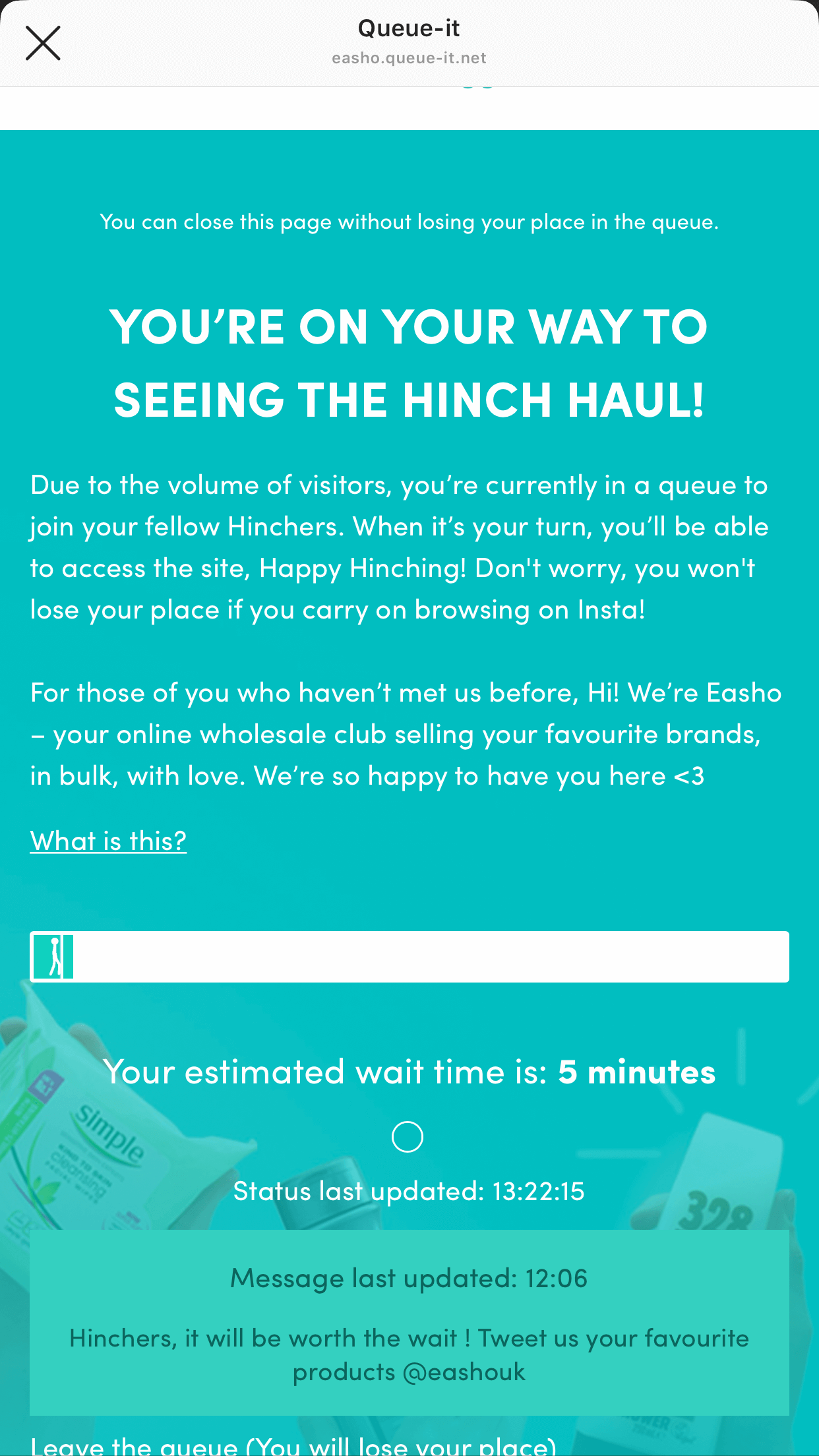 Overall, Queue-it created the stable, positive customer experience that Easho was so keen on providing to its customers, allowing it to cement its brand as a go-to destination for bulk home goods shopping.